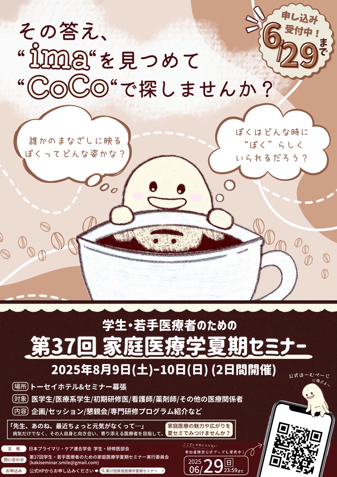 - 名称: 第37回学生・若手医療者のための家庭医療学夏期セミナー