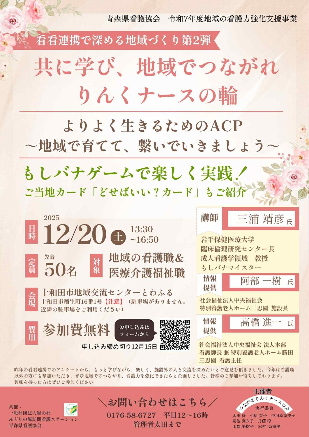 共に学び、地域でつながれ リンクナースの輪 イベント 2025.11.152025.11.17 みどりの風の太田さんからのお誘いです。(もしバナゲームはACPを考えるためのきっかけ作りにはとても有効だと思います。)